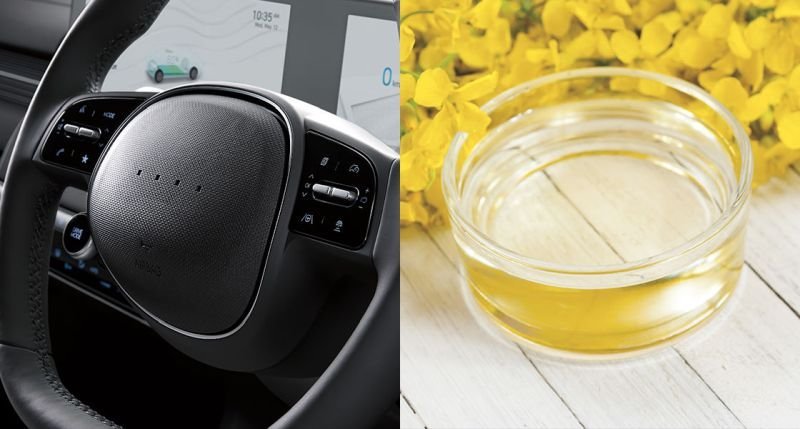 Penutup klakson, switch, steering wheel, door trim, dan lain-lain terbuat dari campuran biji bunga dan jagung. Cat ramah lingkungan juga digunakan dari bahan alami yang diekstrasi.