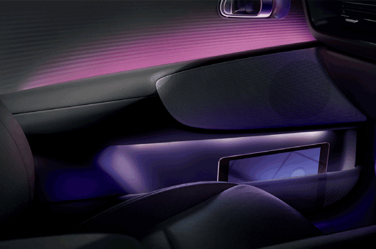 Interactive Pixel Lights 4 titik di roda kemudi dan lampu LED pada crash pad mengindikasikan status mobil yang beragam (welcome/good-bye, voice recognition, dll)