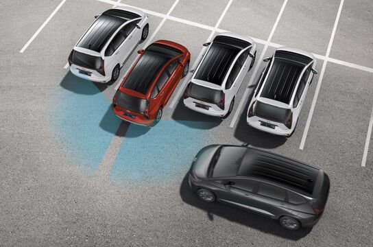 RCCA memperingatkan apabila ada kendaraan di jalur belakang yang mendekat pada saat mundur dan melakukan pengereman darurat jika diperlukan.