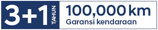 Garansi kendaraan 4 tahun/100.000 km, mana yang tercapai terlebih dahulu.